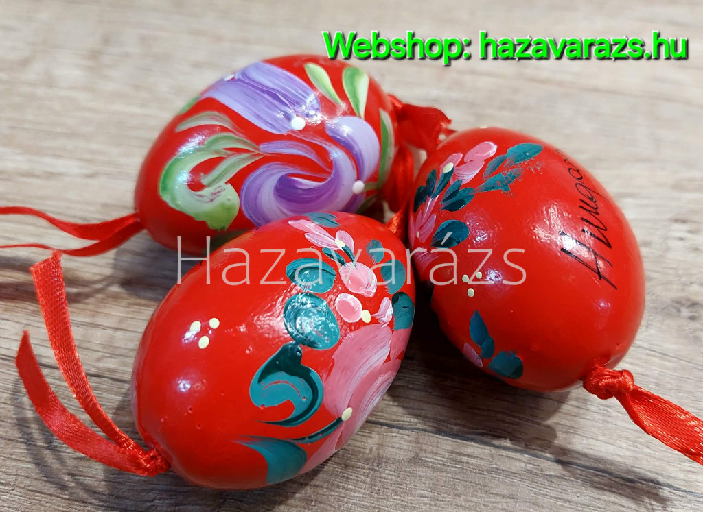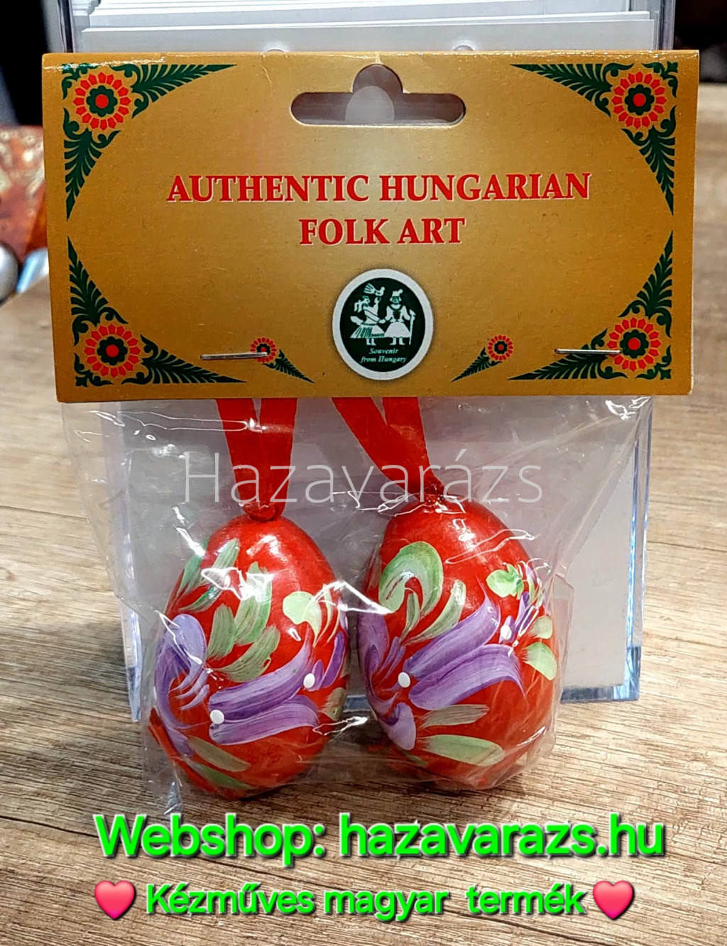 KÉZZEL FESTETT FA TOJÁS 6 CM PIROS HUNGARY FELIRATTAL 2 DB-OS CSOMAGOLT