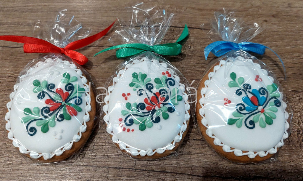 SZÍNES NÉPI MINTÁS HÚSVÉTI TOJÁS MÉZESKALÁCS 1 DB Kb. 6 CM